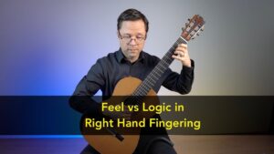 A lesson for classical guitar on feel vs logic in regards to right hand fingering choice. This is from my book: Right Hand Fingering for Classical Guitar: Concepts and Case Studies. This book aims to give students a basic criteria for justifying…