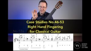 A lesson on right hand fingering using case studies No.46-53 which focus on finger alternation choices. This is from my book: Right Hand Fingering for Classical Guitar: Concepts and Case Studies. This book aims to give students a basic criteria for justifying…